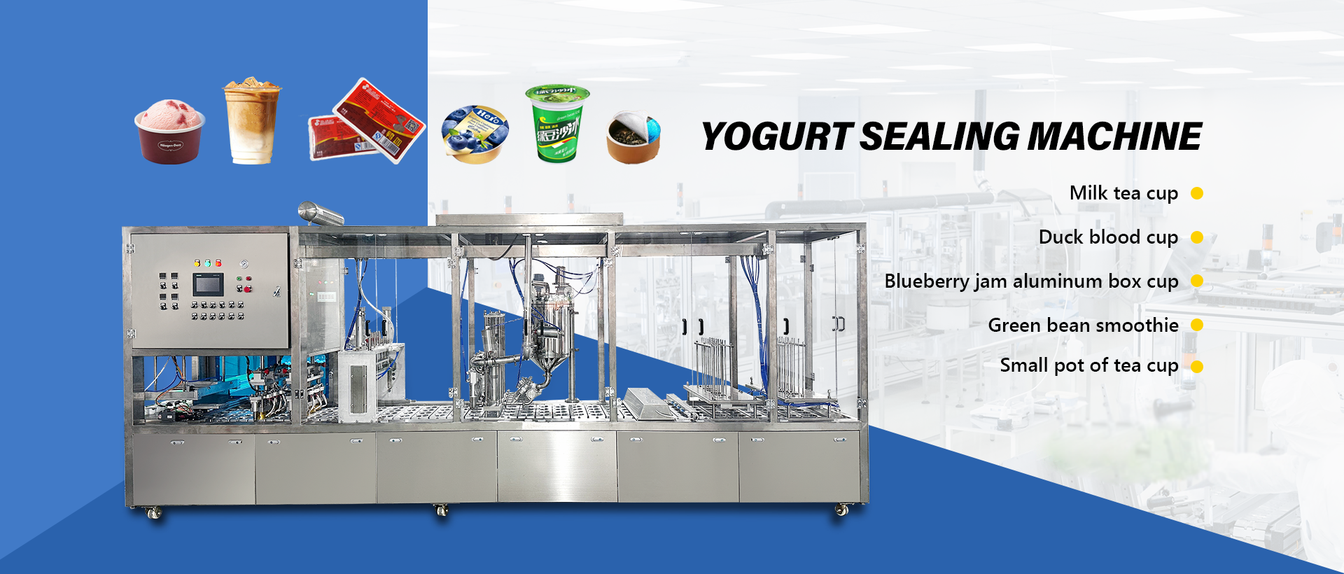 The yogurt cup filling and sealing is a packaging equipment used to fill yogurt into cups and seal them. The following is an introduction to you from the aspects of working principle, structural composition, main parameters etc.